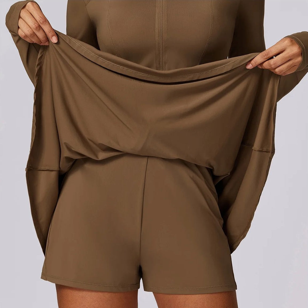 Flexible, sculpting, and made to move—this active set features a built-in zip-up jacket and flowy skirt for a stylish, performance-ready fit.